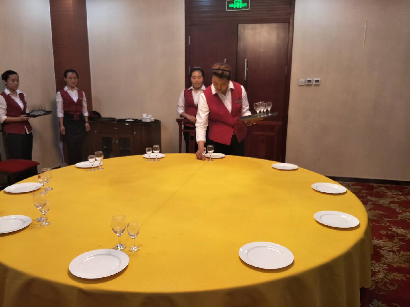 最后一項是進(jìn)行服務(wù)考核,主要是檢驗餐飲服務(wù)員擺桌標(biāo)準(zhǔn),只見大家動作嫻熟、干凈到位,顯示出平時的基本功。